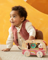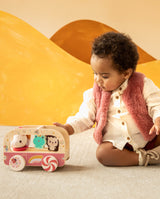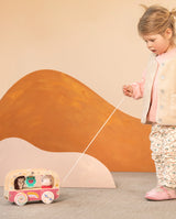 Jucarie de tras, Janod, fermecatoarea broasca testoasa, a carei carapace curcubeu este compusa din 6 arce de cerc din lemn, avand culori delicate. Micutii vor adora sa o scoata la plimbare !