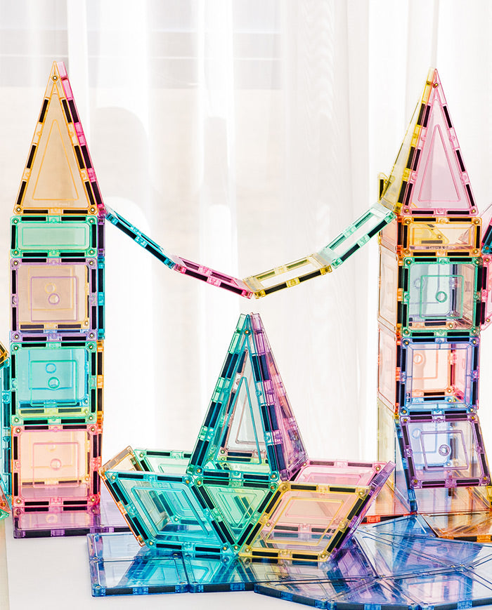 Te vei indragosti de Noul nostru Set Pastel Builders — o colectie uimitoare de placi magnetice in nuante pastelate delicate si forme frumoase, concepute pentru a stimula creativitatea si joaca imaginativa fara limite.